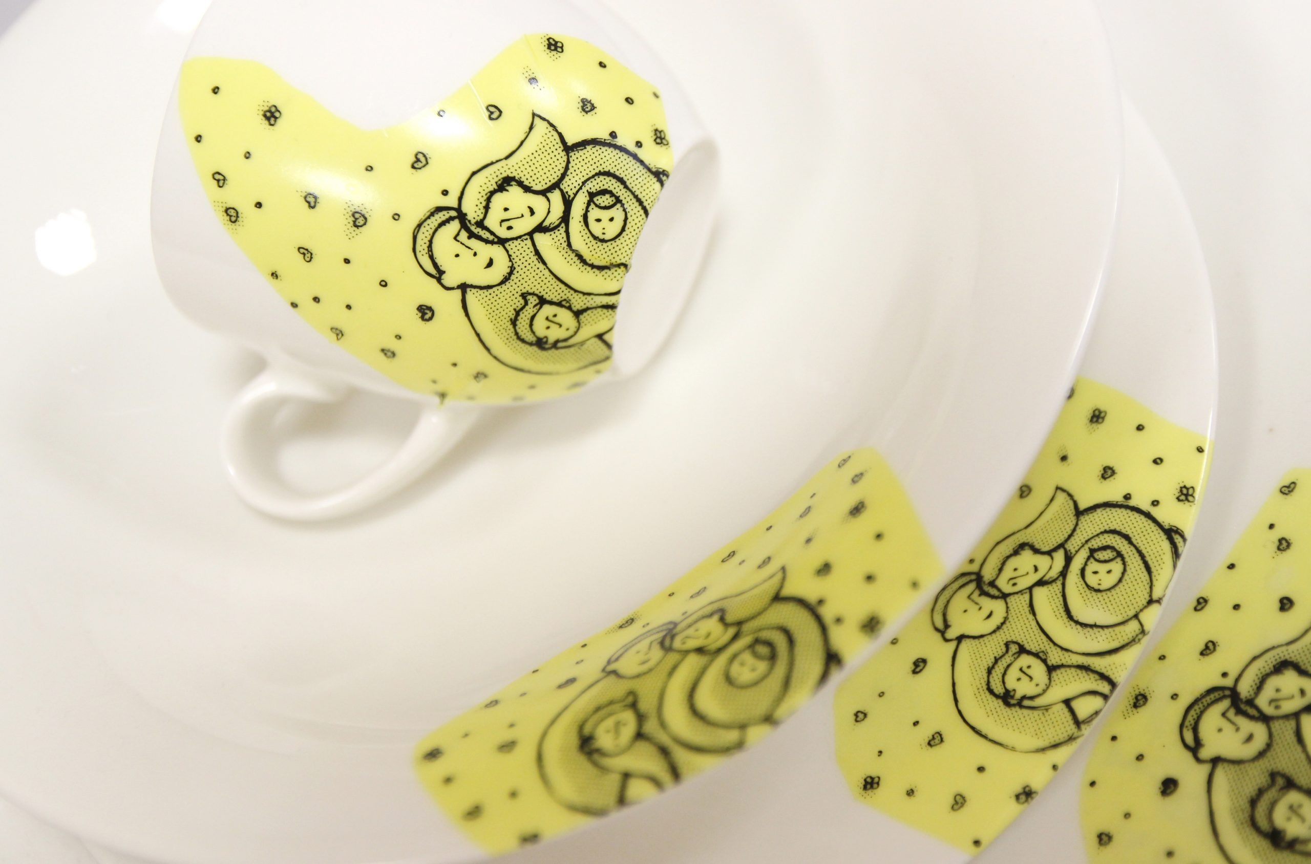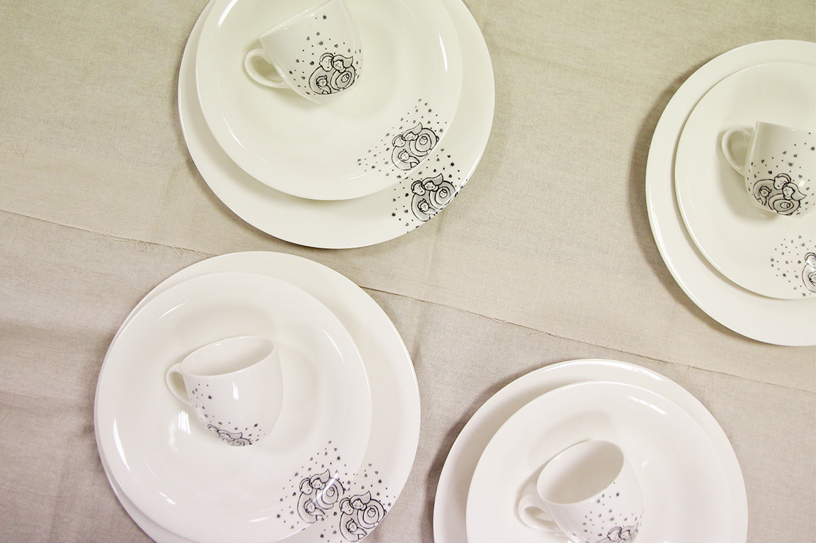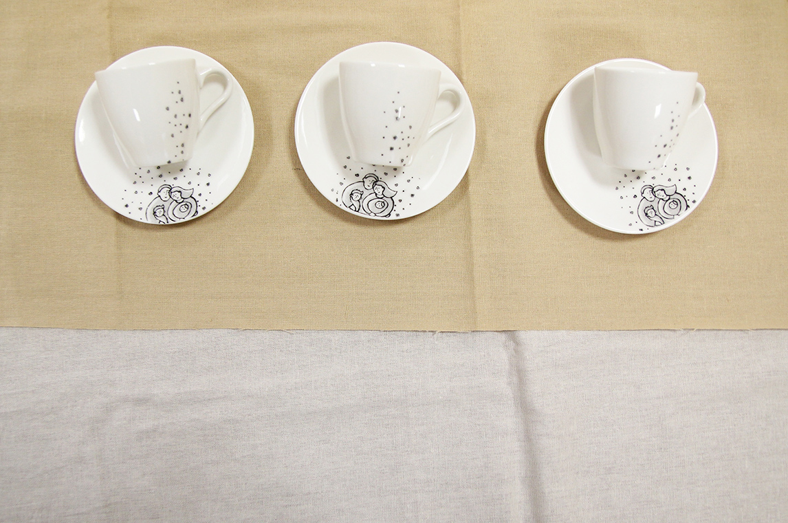 zestaw sześciu filiżanek ze spodkami plus talerzyki deserowe;